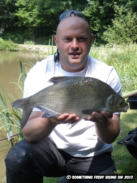 Happy to catch a quite unusual new freshwater species I carried on fishing to see if I could catch a few more pumpkinseed but after quite a few more roach and rudd I decided to head over to the "Carp Free Pool" to try and get my first bream. Fishing luncheon meet on the bottom over feed pellets it took a little while to get any bites but I was encouraged by the fact that both the anglers to my left and right both caught bream whilst I was trickling in the pellets and waiting for my float to go.When it finally did disappear it did so rather quickly and in fact the fish nearly pulled my rod in as it went quite ballistic once it realised it was hooked, surging off breaking the surface in the process. After this initial run however it did what bream are famous for, a rather good impersonation of a wet sack, and was quickly brought into my net.